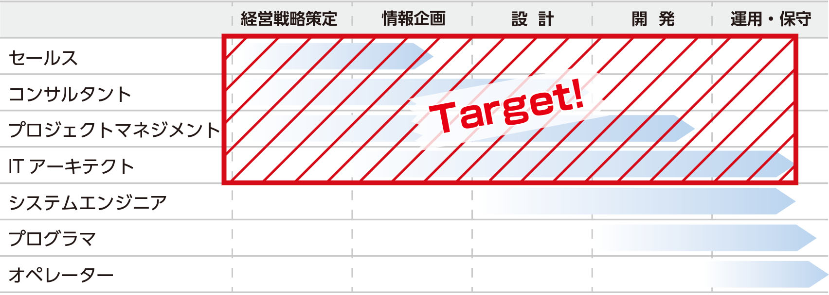 | ・IT戦略立案、システムグランドデザイン、 システム導入に関わるコンサルティング、および実務業務 |